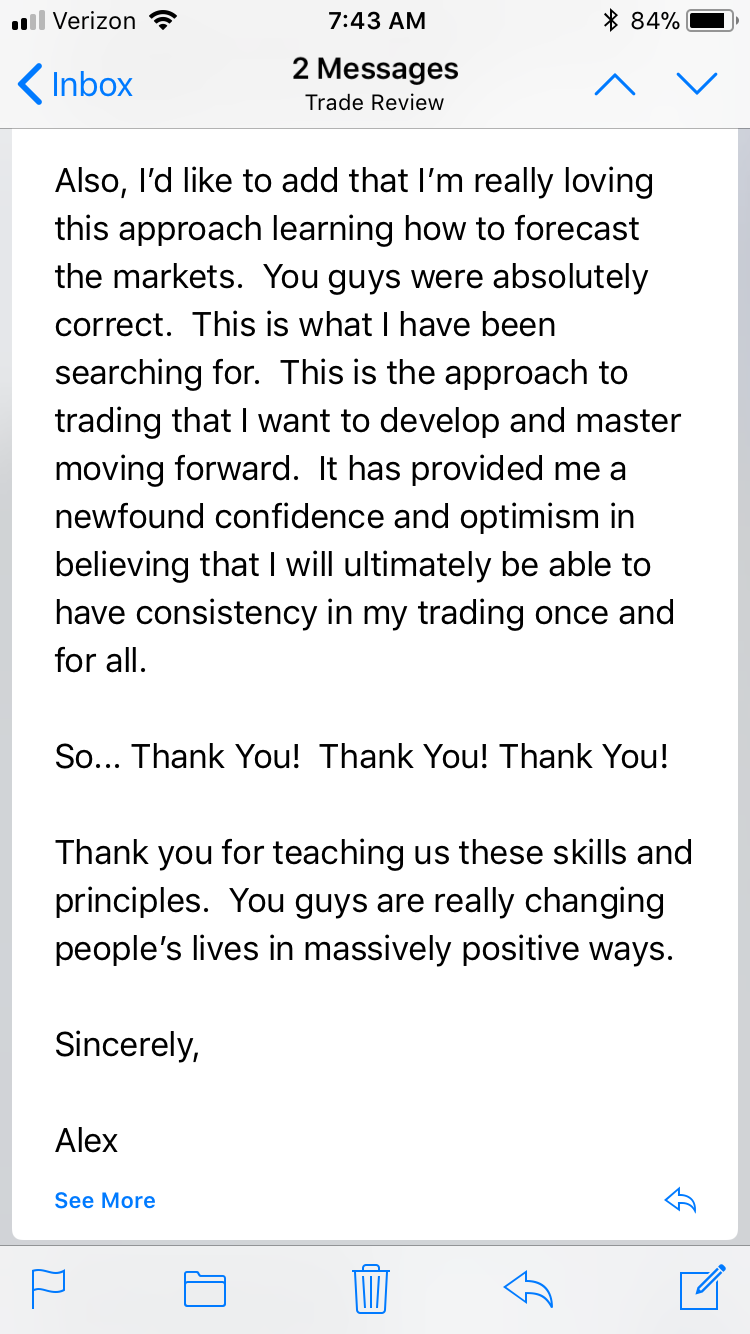 But, you DO have to do the work (Because this WILL TRANSFORM your trading, just notice what previous students have written in to tell us).